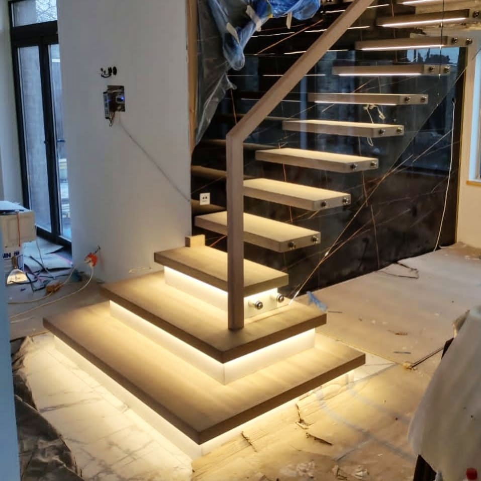 Предлагаем лестницы и ограждения из стекла любых типов, форм и размеров. Мы являемся прямым изготовителем, с собственной сервисной службой в Екатеринбурге, которая занимается монтажом и гарантийным обслуживанием всей представленной продукции. Мы устанавливаем: парящие лестницы, консольные лестницы, лестницы на больцах, лестницы с подступенками и другие варианты.